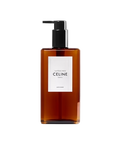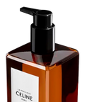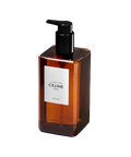 בקבוק מלבני בגוון ענברי עם משאבה שחורה ותווית CELINE PARIS — מינימליזם פריזאי נקי. נפח: ‏500 מ״ל. אריזה חיצונית לבנה במרקם עדין.