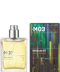 בושם מסדרת אסנטריק 03 מבית הבישום Escentric Molecules המתמחה ביצירת ניחוחות המבוססים על מולקולה יחידה. מבוסס על מולקולה שמופקת משורש ווטיבר ומעניקה ארומה יבשה, טבעית ועשבונית. הפתיחה הרעננה מתפתחת בהדרגה לעומק מינרלי בעל גוון אדמתי רך ונקי. ניחוח מינימליסטי המתאים לגברים ולנשים.